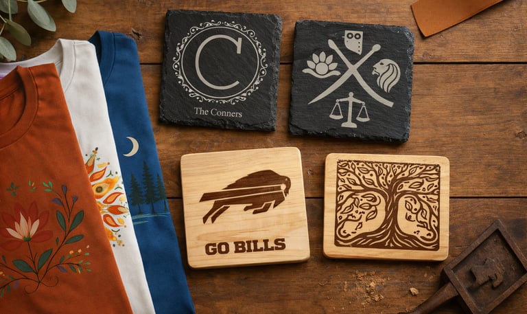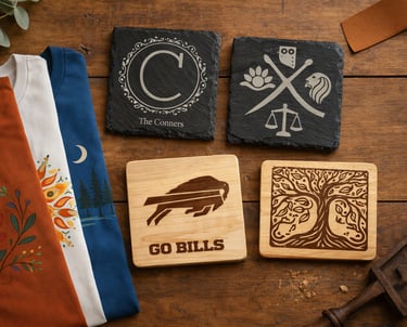 Each of our products is thoughtfully designed and carefully crafted — from engraved coasters and bottle openers to custom décor and statement pieces. We focus on clean lines, bold detail, and designs that feel both rugged and refined.